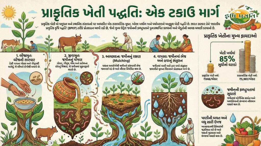 Natural Farming, prakrutik kheti The Sustainable Path for Farmers આજના સમયના ખેડૂત માટે એક નવી આશા છે. વધતા ખેતી ખર્ચ, જમીનની ઉર્વરતા ઘટવી અને આરોગ્ય પર થતી અસરને જોતા પ્રાકૃતિક ખેતી ખેડૂતને સ્વાવલંબન તરફ લઈ જાય છે.